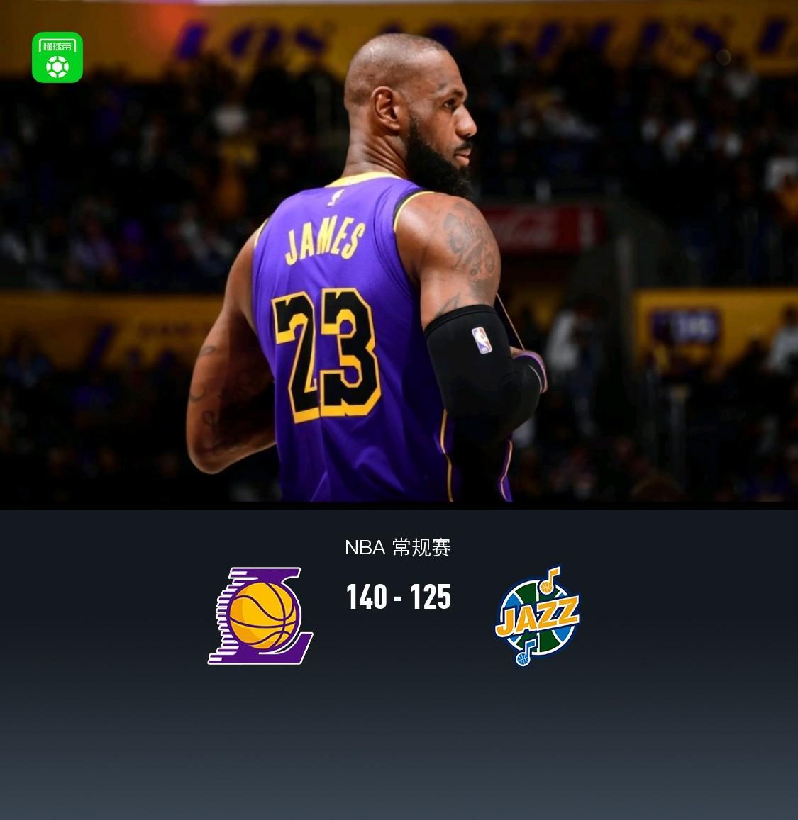 第四節(jié),開節(jié)段爵士馬爾卡寧、努爾基奇相繼得分縮小至5分分差,但隨后爵士突然進(jìn)攻斷電,湖人文森特三分穩(wěn)住局面,隨后湖人詹姆斯策動反擊艾頓、拉拉維亞持續(xù)得分,整體一波20-4將分差拉大至21分,比賽還剩不到半節(jié),雙方逐漸撤下主力,最終湖人140-125戰(zhàn)勝爵士。