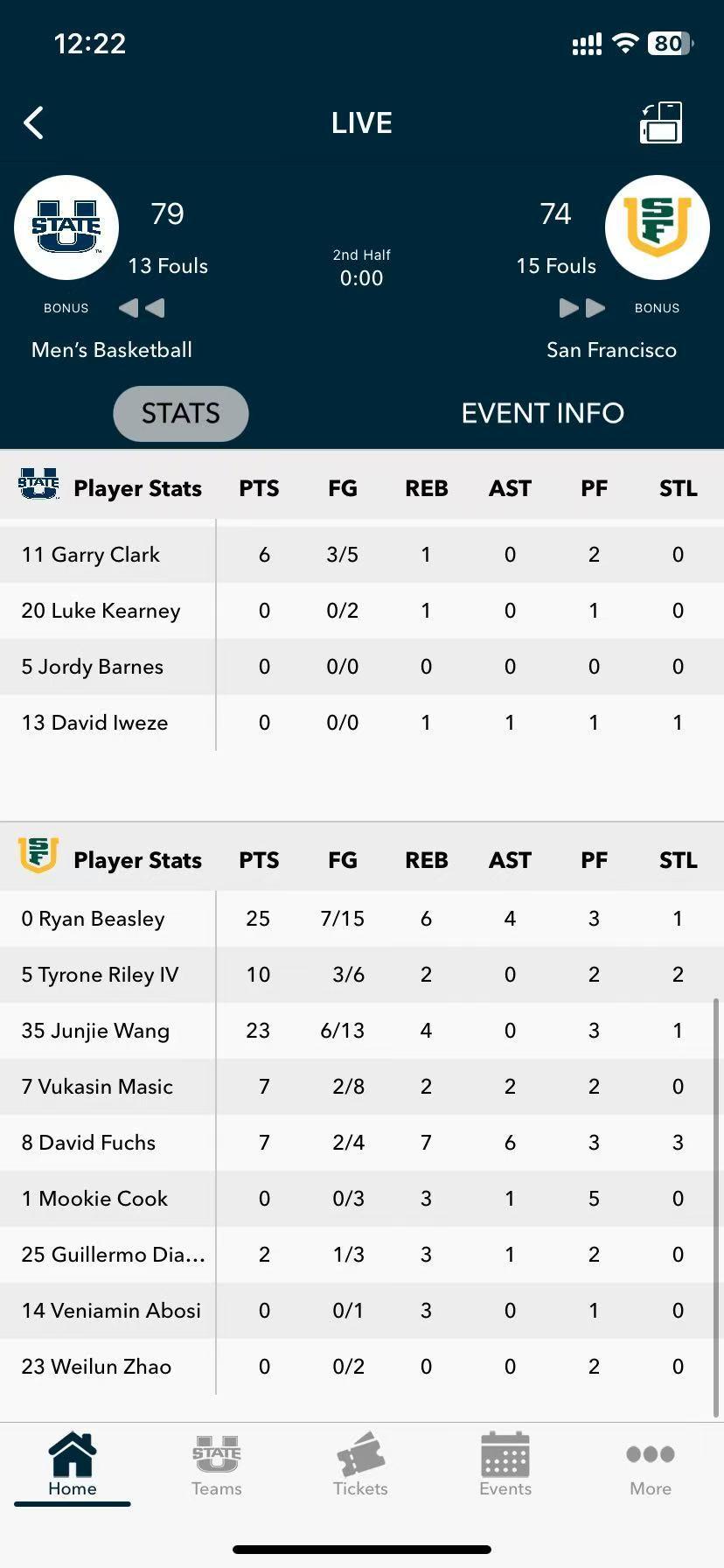 北京時(shí)間10月26日NCAA季前賽,舊金山大學(xué)74-79不敵猶他州立大學(xué)。