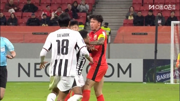 亞冠激烈沖突!張琳芃爆鏟林加德,10人互相推搡,主裁拉架