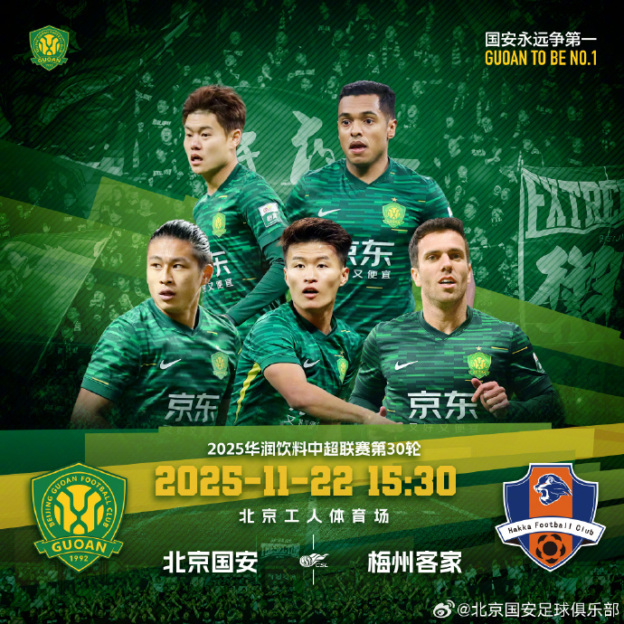 雷速體育11月22日訊 2025賽季中超末輪的對(duì)決中,北京國(guó)安坐鎮(zhèn)主場(chǎng)迎戰(zhàn)梅州客家。