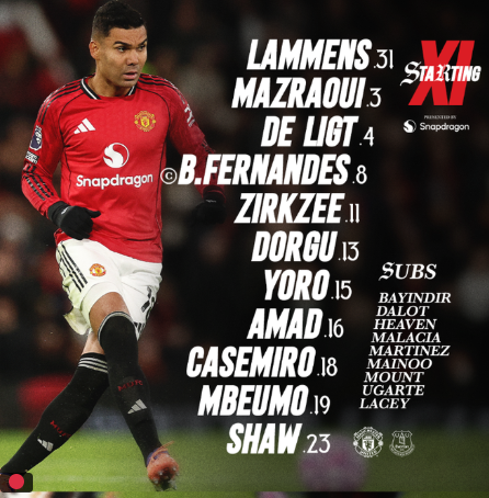 曼聯(lián)vs埃弗頓首發(fā):B費(fèi)領(lǐng)銜!卡塞米羅、皮克福德在列