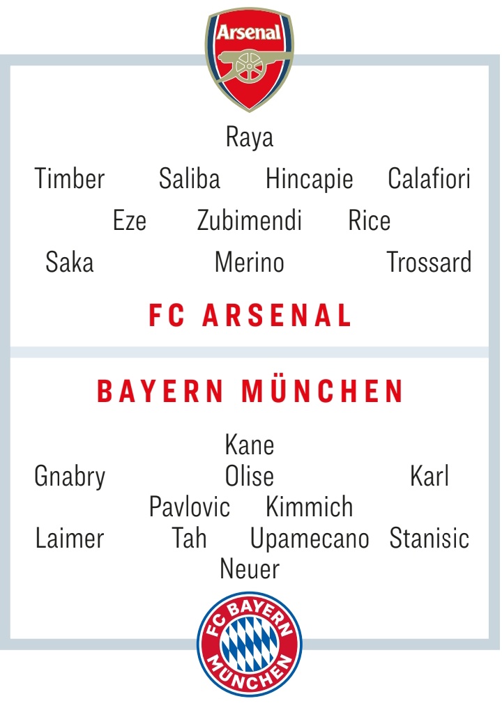 德媒預(yù)測(cè)槍手vs拜仁首發(fā):梅里諾中鋒,凱恩、格納布里在列