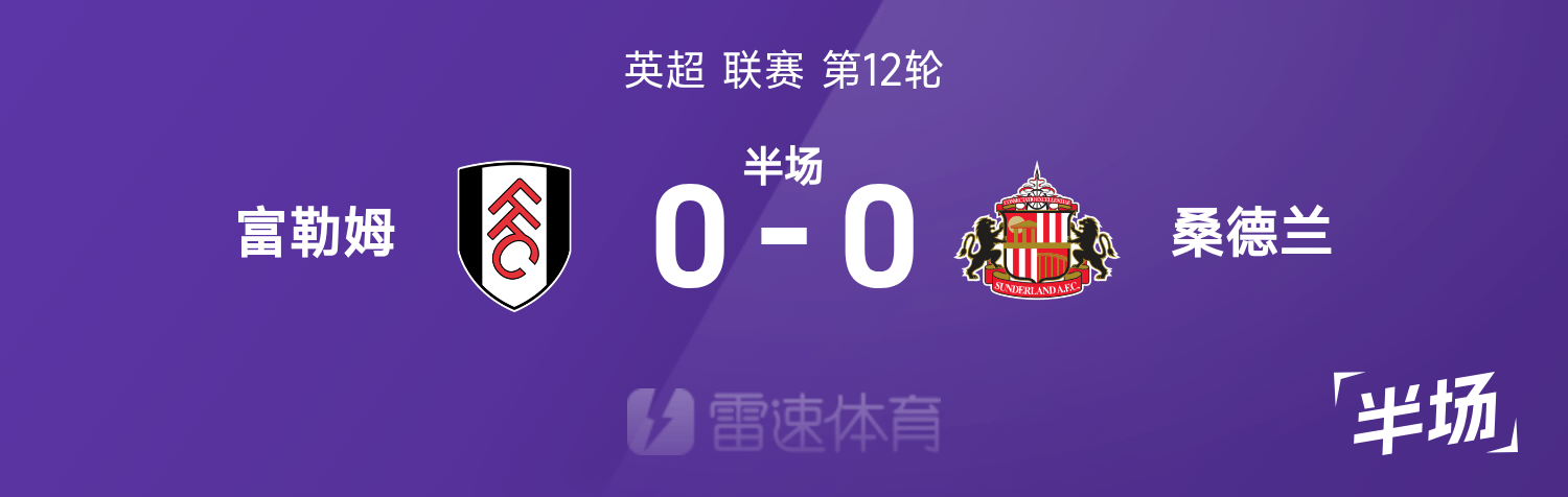 雷速體育11月22日訊 25/26賽季英超聯(lián)賽第12輪,富勒姆迎戰(zhàn)桑德蘭。