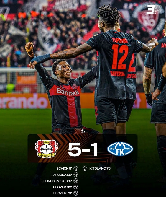 12月15日,勒沃庫森在歐聯(lián)小組賽第6輪比賽中主場5-1大勝莫爾德,成功以小組第一的身份晉級歐聯(lián)杯16強。據(jù)Opta統(tǒng)計,勒沃庫森成為繼阿森納和法蘭克福之后,德國球隊中第三支在小組賽全勝的球隊。本賽季