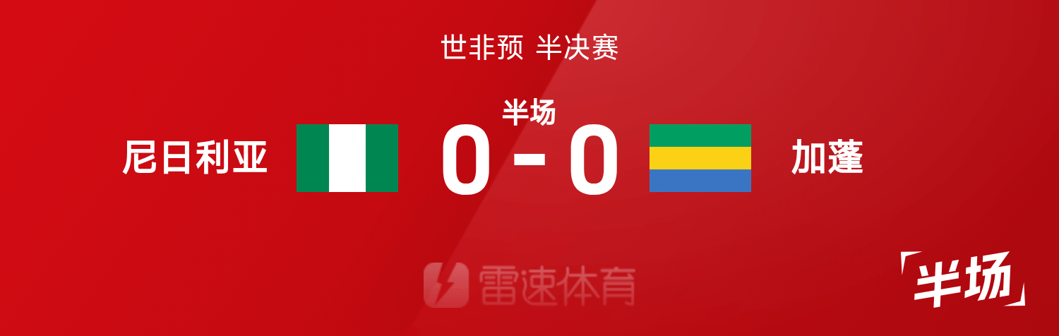 雷速體育11月14日訊 26賽季世非預(yù)半決賽,尼日利亞迎戰(zhàn)加蓬。上半場(chǎng)比賽,尼日利亞多次形成威脅,卻都被加蓬門將姆巴巴化解。半場(chǎng)戰(zhàn)罷,尼日利亞暫0-0加蓬。