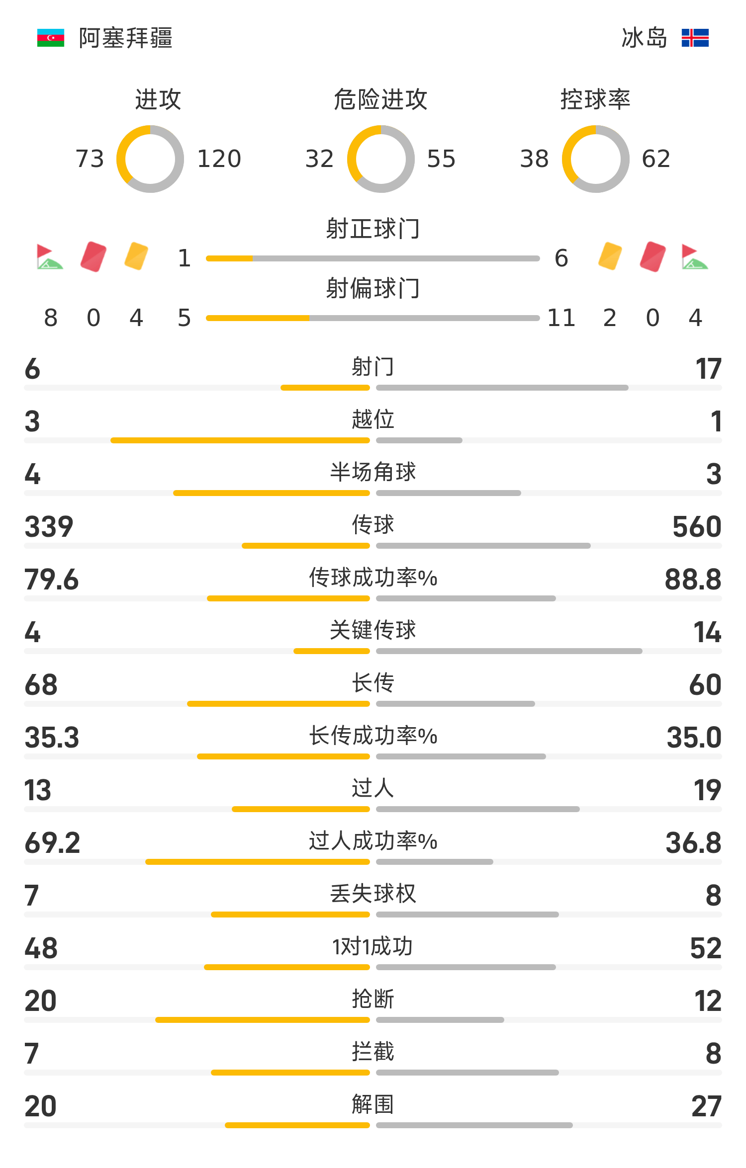 39’古德蒙德松長傳助攻,因加松頭球破門,冰島2-0阿塞拜疆