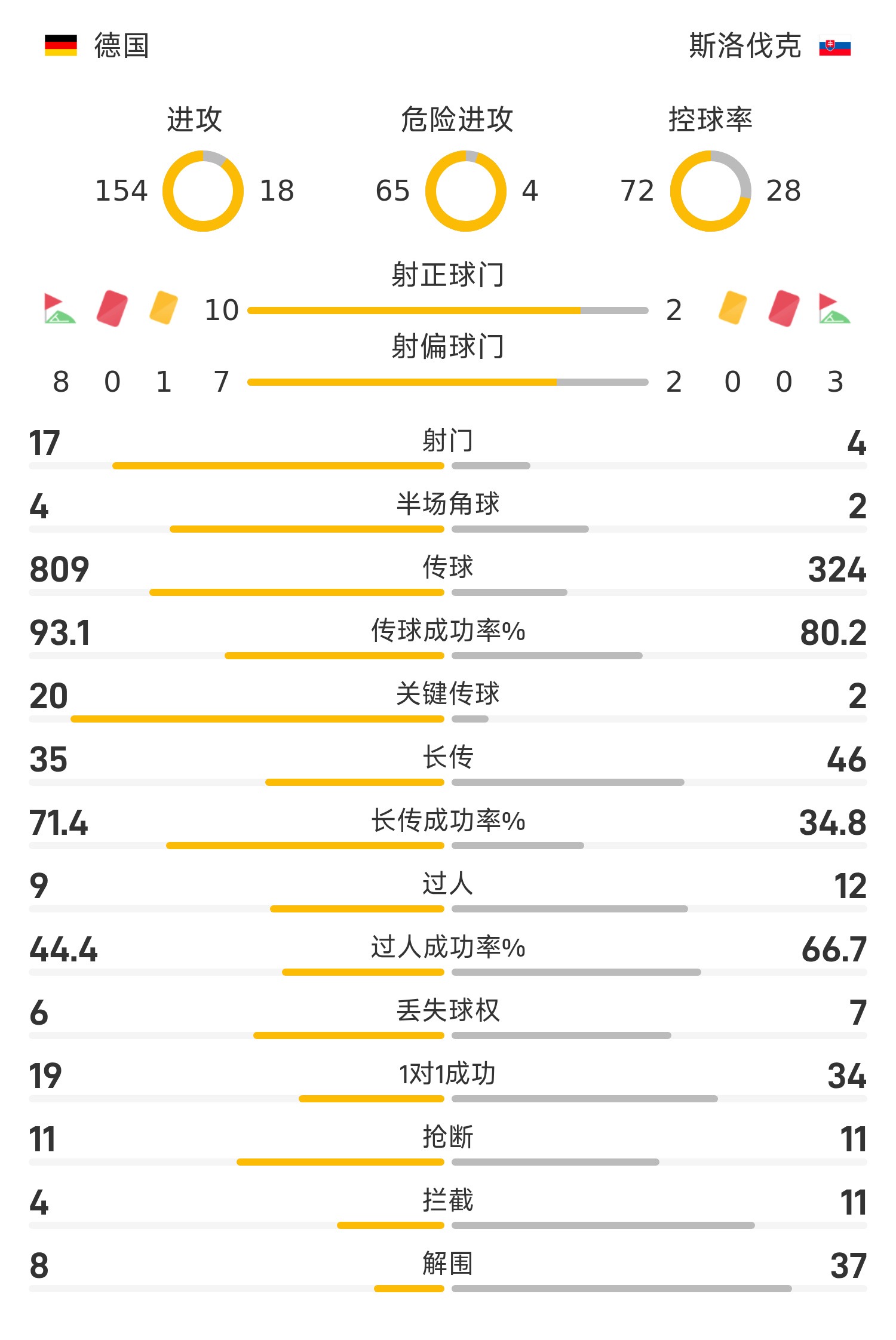 41’維爾茨搶斷左路傳中,薩內(nèi)右路插上墊射破門,德國4-0斯洛伐克