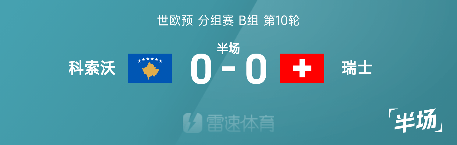 雷速體育11月19日訊 26賽季世歐預(yù)分組賽B組第10輪,科索沃迎戰(zhàn)瑞士。半場(chǎng)戰(zhàn)罷,雙方比分暫為科索沃0-0瑞士。