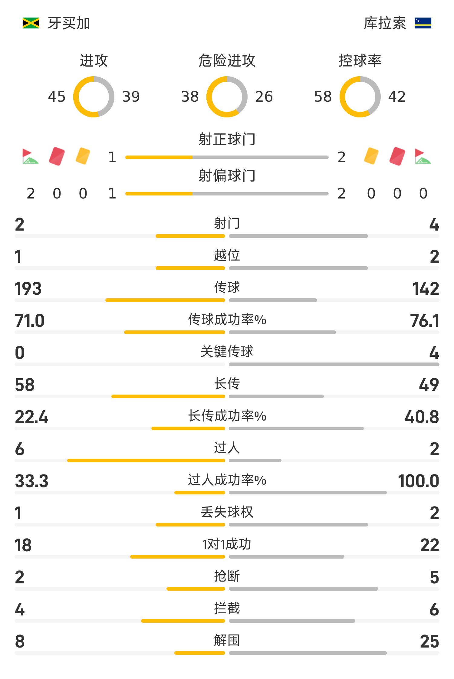 牙買加首發(fā)陣容:1-布雷克、22-利治、5-皮諾克、2-倫比基薩、6-金、10-雷德、14-海登、7-格雷、21-弗雷、20-塞法斯、11-尼克爾森