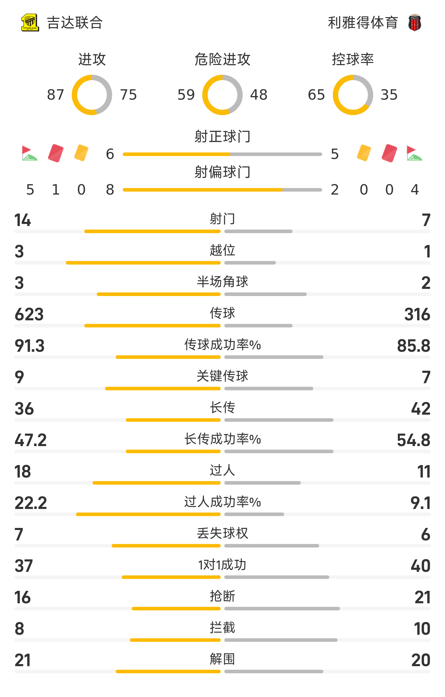 吉達(dá)聯(lián)合首發(fā)陣容:1-拉伊科維奇、2-佩雷拉、15-卡迪什、13-尚基提、12-米塔伊、7-坎特(79’14-納什利)、8-法比尼奧、34-貝爾溫(90’20-沙拉赫利)、19-迪亞比、27-A.加姆迪(67’80-H.加姆迪)、9-本澤馬(79’24-奧卜德)