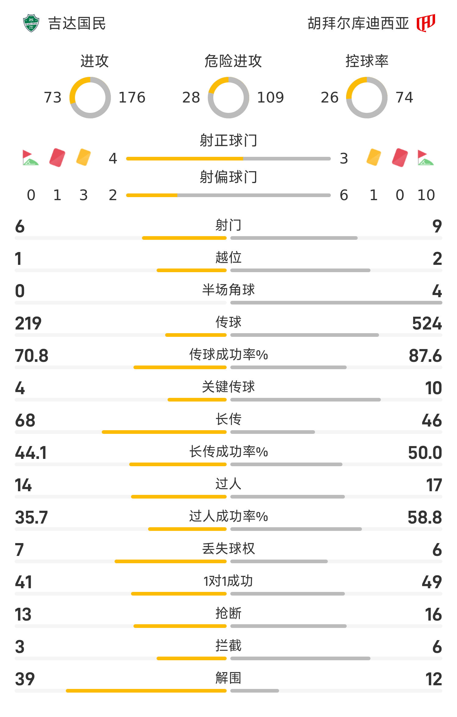 66’凱西弧頂位補(bǔ)射攻入死角,十人吉達(dá)國民2-1胡拜爾庫迪西亞