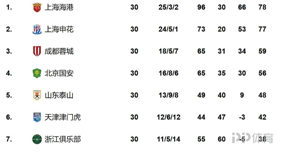 有趣的是,本賽季中超前7名與上賽季中超前7名完全一致。分別為:上海海港、上海申花、成都蓉城、北京國(guó)安、山東泰山、天津津門虎、浙江隊(duì)。
