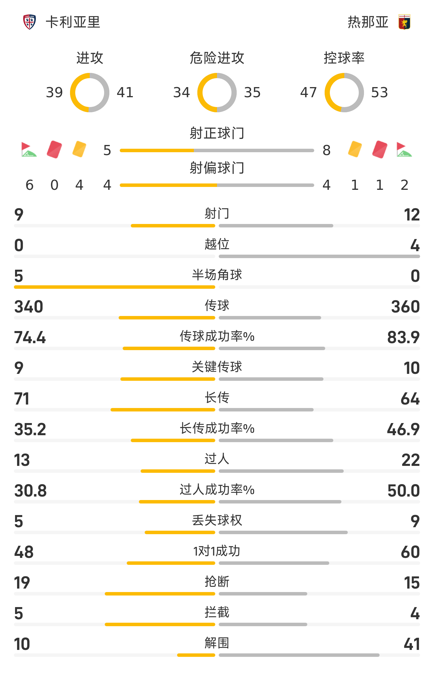 雷速體育11月23日訊 25/26賽季意甲聯(lián)賽第12輪,卡利亞里3-3戰(zhàn)平熱那亞,卡里克爾第83分鐘絕平救主。全場(chǎng)比賽,波雷利上演梅開(kāi)二度,厄斯蒂加德、埃斯波西托、維蒂尼亞、卡里克爾破門建功。