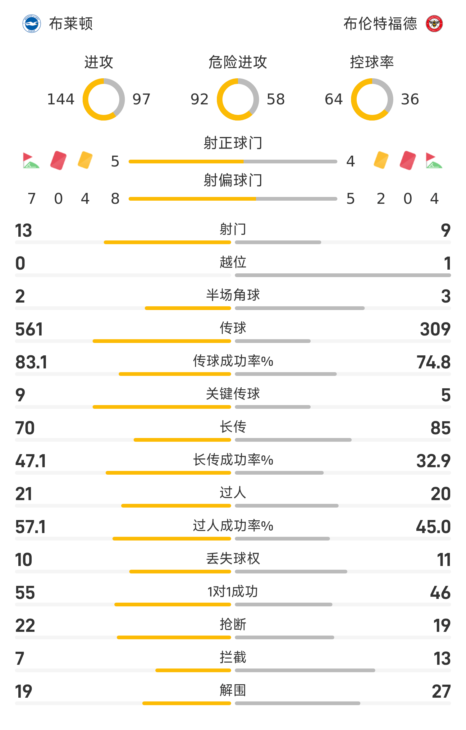 布萊頓替補陣容:23-斯蒂爾、5-鄧克、34-費爾特曼、29-德庫耶佩、42-科波拉、13-辛謝爾伍德、8-格魯達、9-齊馬斯、19-科斯托拉斯