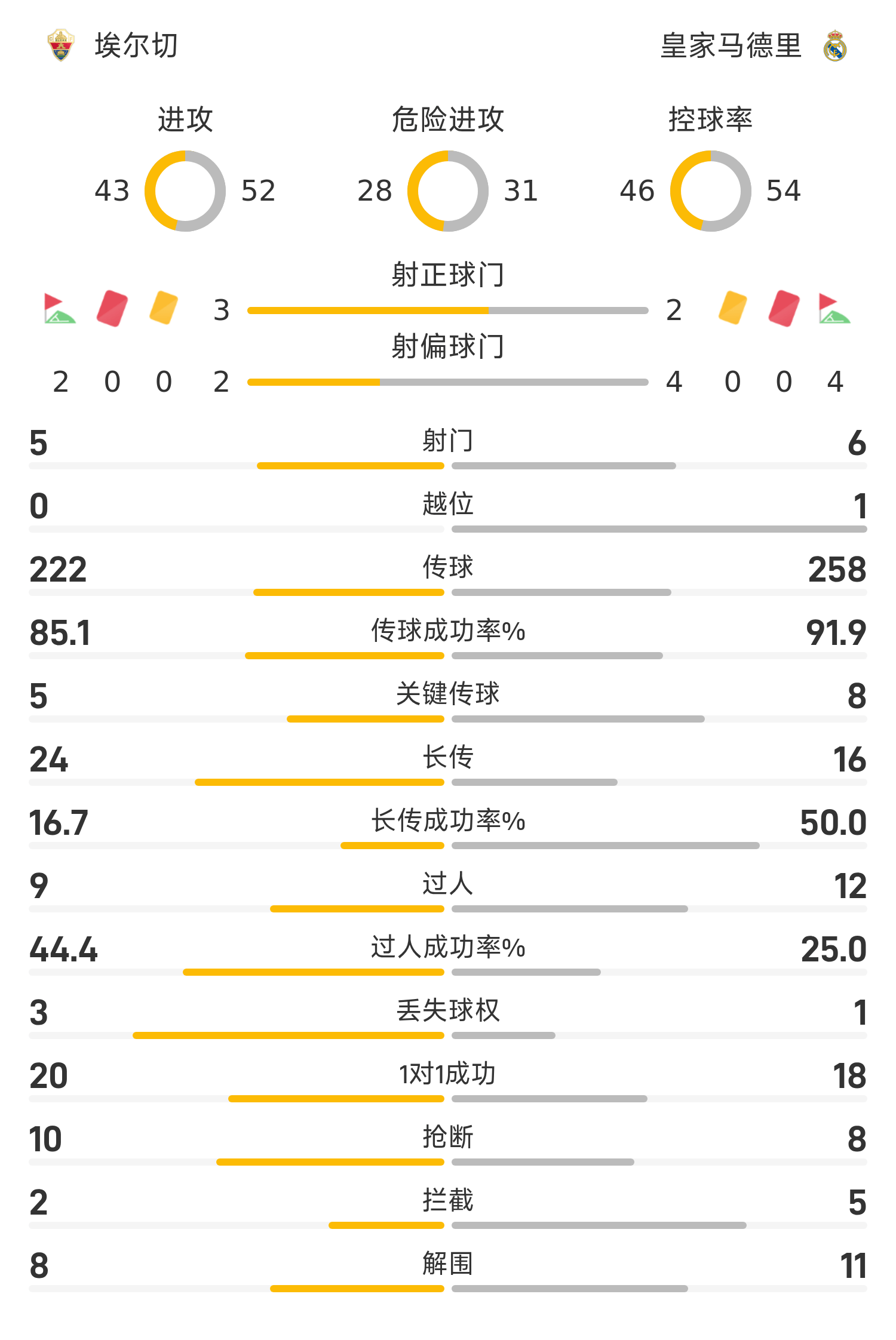 雷速體育11月24日訊 25/26賽季西甲聯(lián)賽第13輪,埃爾切迎戰(zhàn)皇家馬德里。半場戰(zhàn)罷,雙方比分暫為埃爾切0-0皇家馬德里。