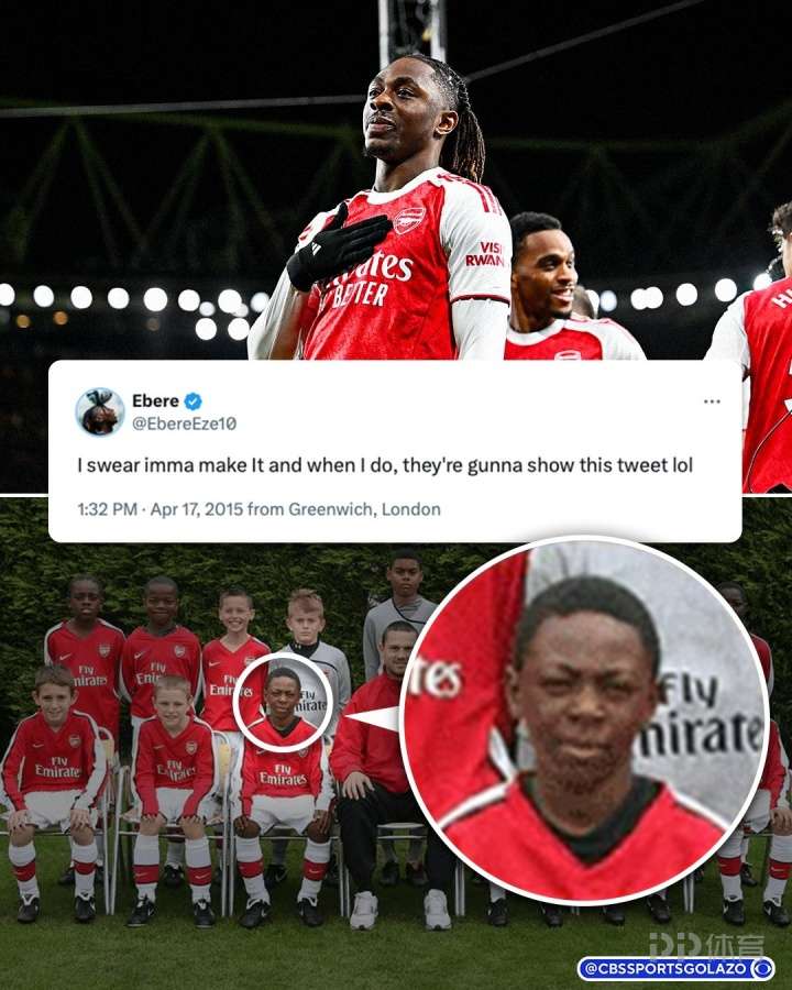 埃澤8歲就進(jìn)入阿森納青訓(xùn)體系,13歲離開槍手。如今重回母隊(duì)的他,在個(gè)人首次北倫敦德比中就用一記帽子戲法兌現(xiàn)了自己當(dāng)初許下的諾言。