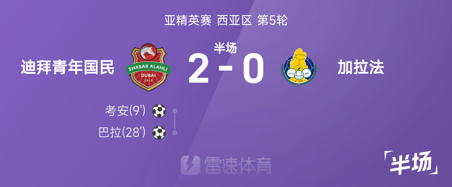 28’阿迪爾助攻,巴拉世界波打進(jìn)死角,迪拜青年國民2-0加拉法
