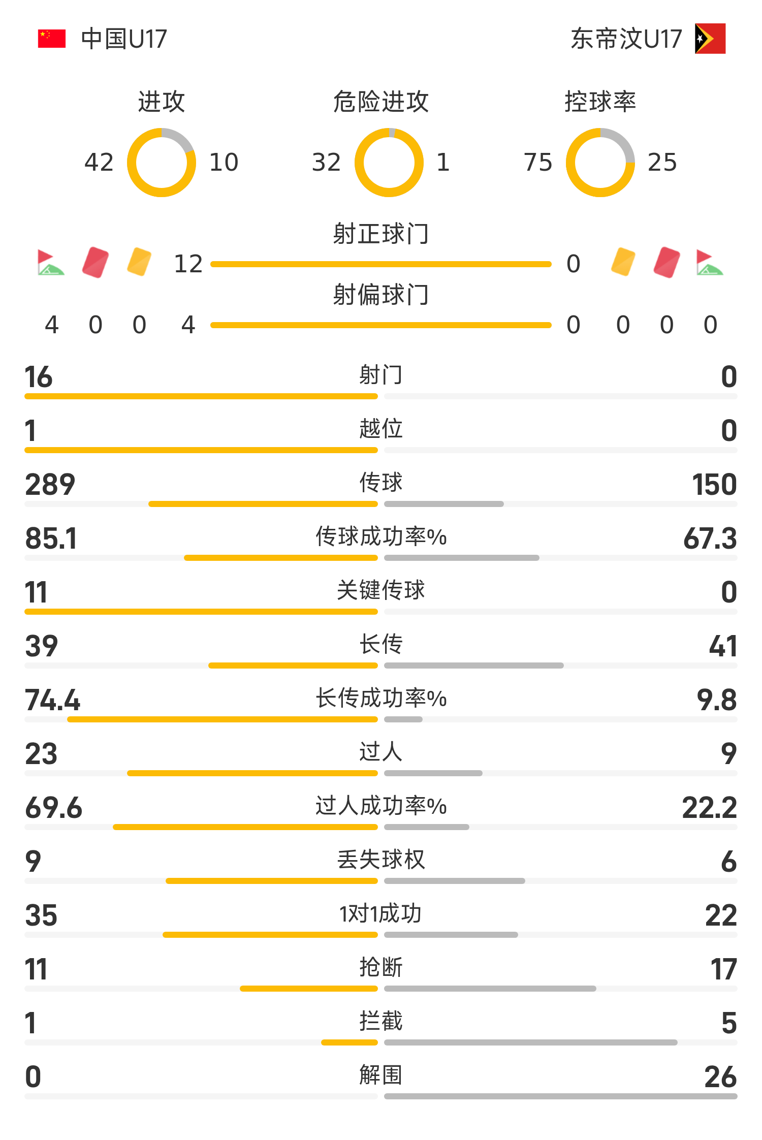 中國U17首發(fā)陣容:1-秦子牛、5-李鈞鵬、8-張旭堯、4-南子勛、2-金峰、19-萬項、15-孔璽諾、7-周雨諾、3-謝晉、21-帥惟浩、9-張伯霖