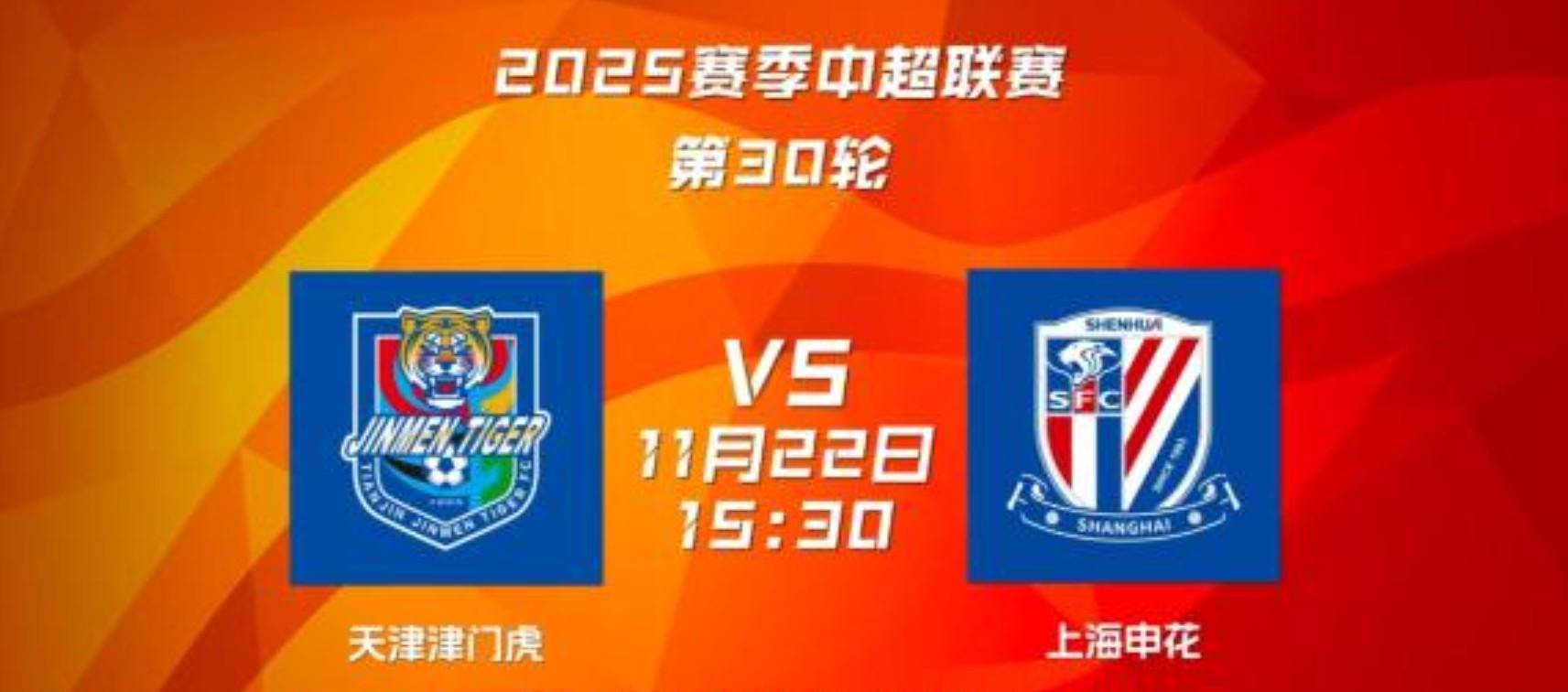 11月22日15:30,2025中超聯賽第30輪,上海申花將客場挑戰(zhàn)天津津門虎。目前,申花隊排在中超積分榜第2位,落后榜首海港隊2分。