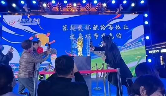 北京時間11月26日,據(jù)泰州拍客報道,泰州隊贏得的“蘇超”冠軍獎杯今天已經(jīng)開啟全市巡展,首站在泰州海陵老街。